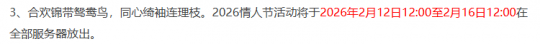 今年的情人节活动将在2月12日至16日期间开启,活动分单人和双人类型的,和往年大同小异。