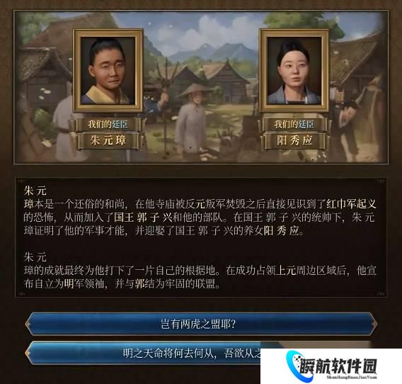 3、注意出现任务对话选项时选择第一个直到1353到1355年朱元璋登场。