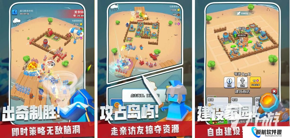 欢迎各位指挥官阁下来到奇幻的海岛地图上进行战斗讨伐,玩家可自由解锁超多可爱士兵进行反塔防的战斗,战斗策略玩法与养成士兵的机制都很耐玩,上手轻松的控制体系就可指挥**完成PK,多样兵种合作厮杀战斗的快感令玩家大呼过瘾,以指挥家的身份带领士兵完成战役任务更显刺激,硬核的3D建模纹理塑造出独特的海岛战场。