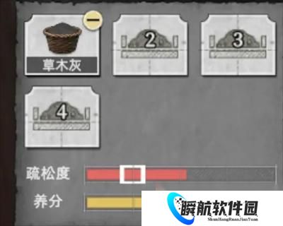 先加入 1 个「草木灰」可以看到疏松度刚好及格,营养高了