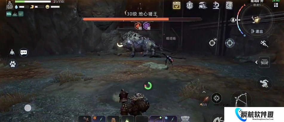进去以后就能看到30级的boss地心猪王了,这里大家要注意隐匿突袭这个人物天赋要用上,这个天赋在没有仇恨的时候,只要蹲下进行的第一下攻击能够打出百分百的暴击,开启战斗时,玩家先蓄力一下,平A两下跳起来就能直接把猪王的第一次冲锋给躲过去。