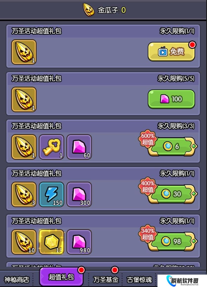 ①万圣节活动期间,限时开启“神秘商店”用“金瓜子”可与小魔女交易“南瓜盲盒”盲盒会开出柜台海报上的奖励;可在“超值礼包”及“星辉祈福”处获取“金瓜子”。