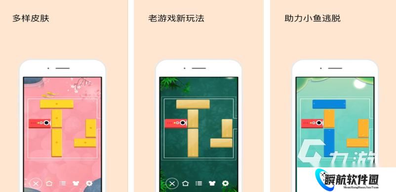 小鱼儿脱困其实就是款融合了小鱼元素的华容道游戏,玩家的任务是挪动平移各种木质方块就出小鱼,木块造型的小鱼看上去也十分精致,帮助小鱼儿脱困的游戏任务跟主题玩法十分贴合,游戏操作简单但后面解锁的关卡闯关难度会增加,色彩分明的美术表现也给这款游戏营造出轻松休闲的气氛。