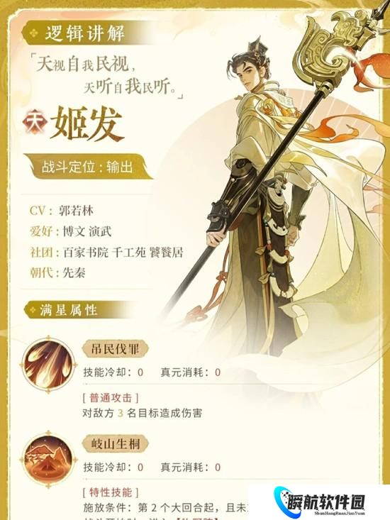忘川风华录新名士姬发怎么样?姬发建立周朝的过程蕴含丰富战斗元素,为技能设计灵感源泉。“维师尚父,时维鹰扬。凉彼武王,肆伐大商,会朝清明。”在忘川中,姬发将作为输出名士登场,使君大人可点击下图,领略姬发牧野鹰扬、分封天下的君王气度!小编抱来了姬发简版技能,使君大人快来看看吧!