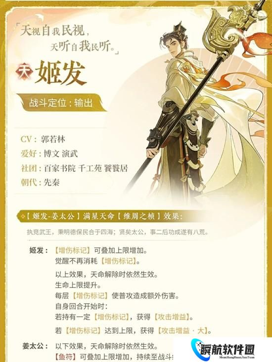 姬发:【增伤标记】可叠加上限增加。觉醒不再消耗【增伤标记】。