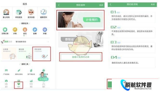 在“服务”界面选择“预防接种”,选择“计免预约”界面,进入“预约前须知”界面,点击“立即预约”进入“选择预约人”。