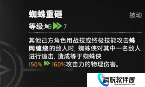 蜘蛛人在漫威秘法狂潮中的核心天赋是“蜘蛛重砸”,该能力可在队友释放战技时触发,将负面效果施加于敌人,并对被蛛网缠绕的目标进行一次追击。这次追击造成高达180%攻击力的物理伤害,同时为蜘蛛人积攒30点终极能量,加快大招释放节奏。这一机制使得蜘蛛人在配合具有频繁战技输出的队友时表现尤为突出,能量获取更加稳定,战斗节奏更流畅。