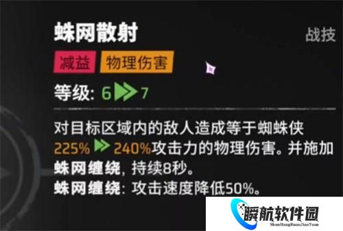 该技能作用于指定区域内的所有敌人,造成一次物理伤害并附加“缠绕”状态,持续8秒。处于缠绕状态下的敌人攻击速度会降低,且每次攻击都有概率触发蜘蛛人的天赋反击机制。这一减益效果不仅限制了敌方输出节奏,还进一步强化了蜘蛛人作为控制核心的地位。配合高攻速队友时,可频繁触发追击,形成压制循环。