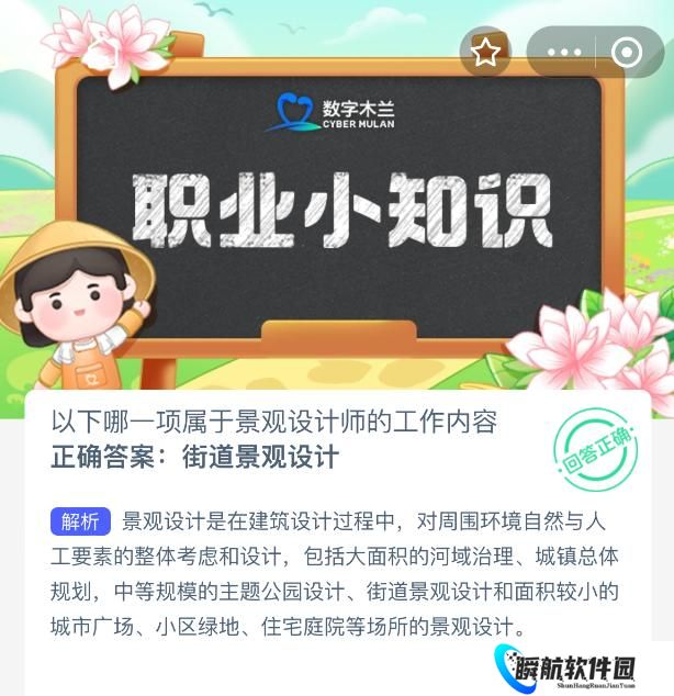 以下哪一项属于景观设计师的工作内容?【蚂蚁新村每日一题】2025年11月7日题目已发布!坚持答题,积累木兰币,即可加速小镇建设。答对本题,立即可享“产速+3/时”的加速奖励!今天正确答案是【街道景观设计】。