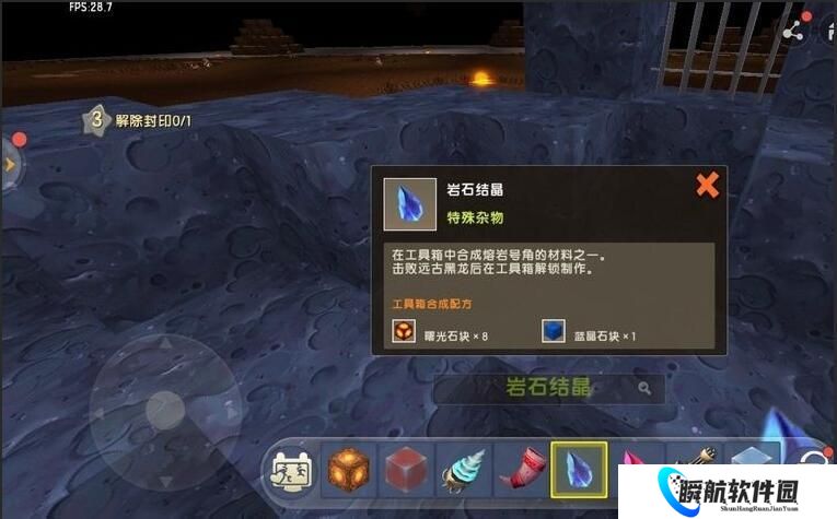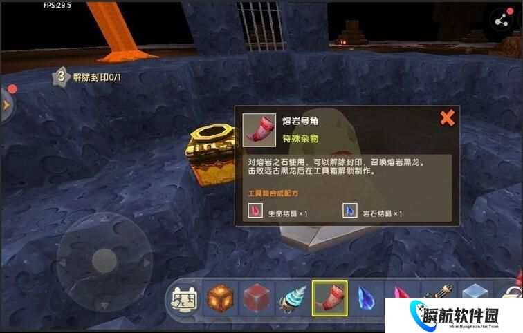 迷你世界熔岩之石检查的方法是:解除封印需要用到熔岩号角,这样即可检查完成,熔岩号角只能对熔岩之石使用,通过生命结晶和岩石结晶合成。