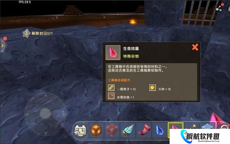 4、生命结晶需要通过一捆麦子、火种和水果拼盘制作而成,岩石结晶通过曙光石块和蓝晶石块制作而成。
