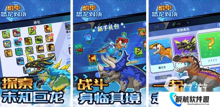 机甲恐龙对决把科幻机甲和史前恐龙放在一起,画面里既有未来感的机甲又有远古的恐龙,玩的时候操控机甲打恐龙,刚开始能选基础机甲,速度快的机甲灵活但攻击力低,力量大的机甲攻击力高但跑得慢,战斗的时候要利用地形,躲在石头后面能避开恐龙的冲锋,从高处跳下来偷袭能打更多伤害。