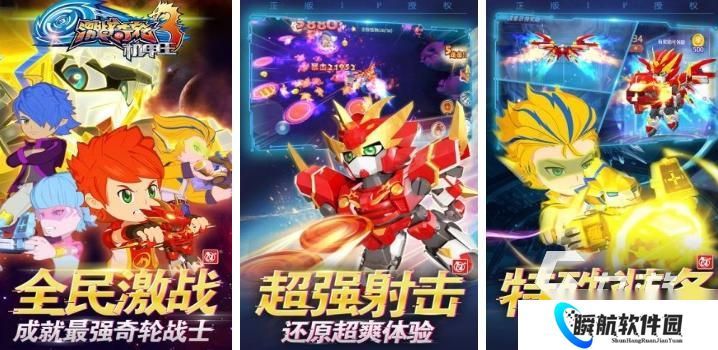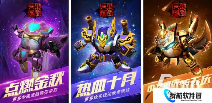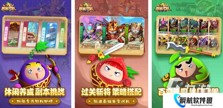 果宝三国将果宝机甲与三国题材结合,玩法非常的多样,而且机甲角色还会对应三国人物,机甲外观融合果宝特色与三国武将铠甲元素,技能结合三国武将招式,战斗采用回合制策略模式,玩家需组建3-5台机甲的战队,战前根据敌方阵容搭配机甲与技能。