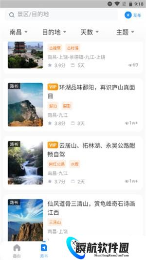 3、点击进入路书导航,你可以筛选出发地、目的地和行程天数,查看推荐的路书;