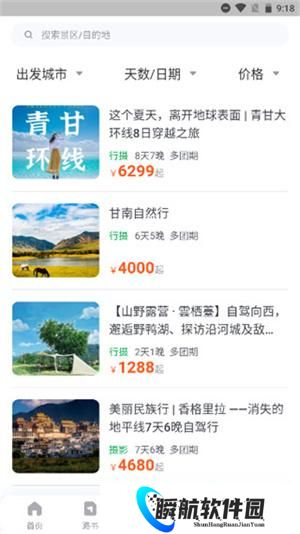 4、点击进入主推活动,可以筛选类别、目的地、天数和价格,查看推荐的自驾团队。