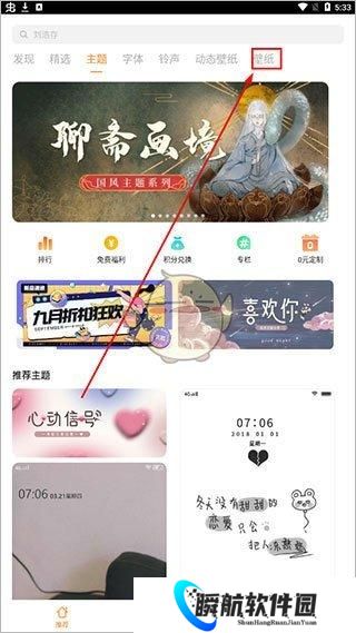 1、在本站下载i主题旧版本,运行软件,点击上方选择壁纸;
