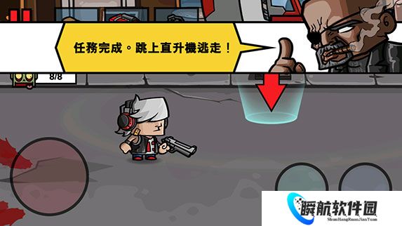 5、完成关卡的任务目标后,玩家再控制角色移动到标记位置,这样就能乘坐直升机安全逃走,关卡也就顺利完成;