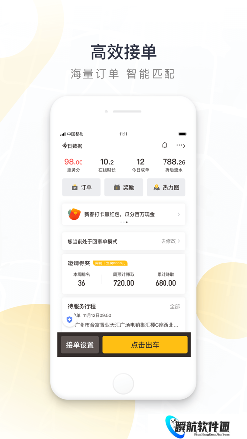 3、结合了智能调度、精准导航、个性化服务等功能,帮助司机提升接单效率和服务质量。