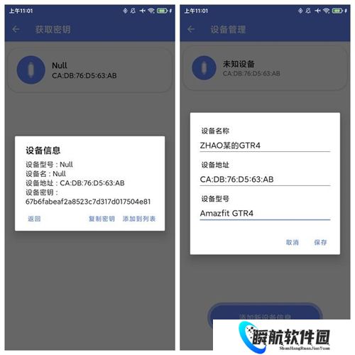 2、选择登录Zepp帐号,在获取密钥界面中选择“添加到列表”,然后在设备管理里设置型号和你喜欢的名字(非必需)。