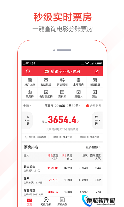 1、最精准的实时票房查询工具,及时、准确、高效掌握电影市场实时动态,更加高效的分析的影片观影体验。