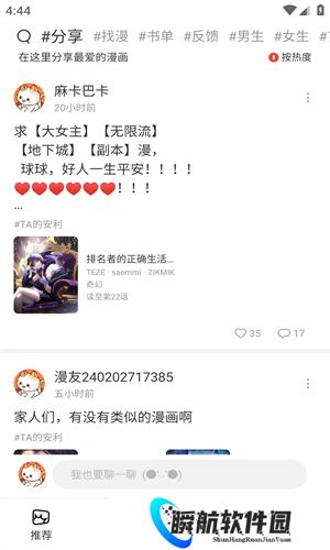 2、主动与其他漫友分享漫画作品,或者在评论区讨论剧情,表达自己对作品的评价。