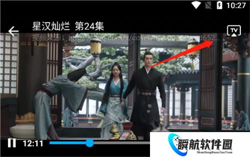 2、在视频播放界面,点击右上角【TV】按钮,在选项页面中点击【投屏】按钮。