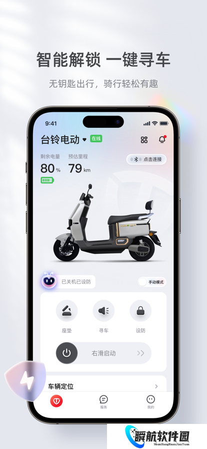2、可以充当电动车车主的蓝牙车钥匙,远程启动、开关都能在手机上完成。