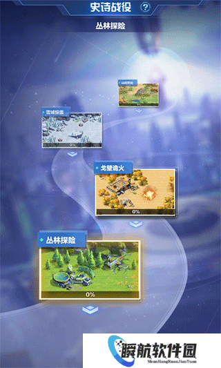 史诗战役每一章史诗战役都有着不同的剧情与事件玩法,探索性较强。在战役中指挥官需要击败大量敌人,破解各种不同的机关从而获得藏在各处的宝箱,宝箱中包含着英雄、黄金、芯片以及各种资源类奖励。