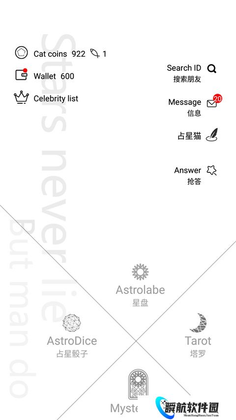 占星猫app是一款专为星座运势而打造的占卜平台,在该平台中打造了多种的占卜模式,包括了星盘、塔罗牌、占星骰子等等,只需要用户将所需要的信息输入到其中,就会生成一个占卜的结果。所生成的占卜结果内容可以直