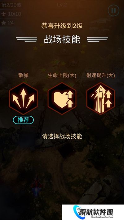 通过战斗中累积的经验值可以升级战机;每提升一级,玩家都可以在三选一的战场技能中进行选择;