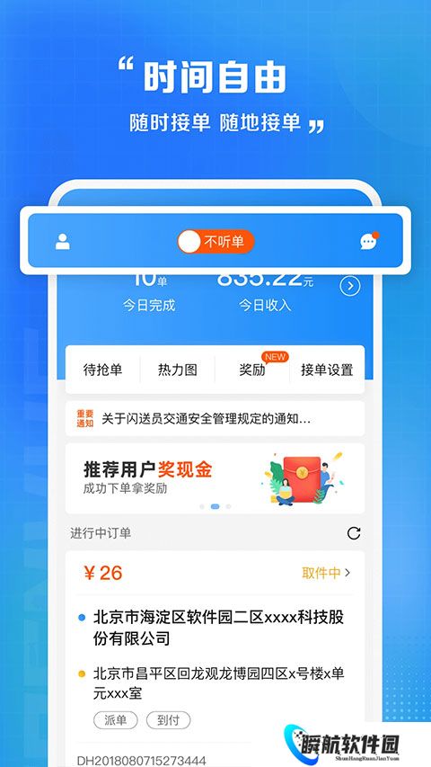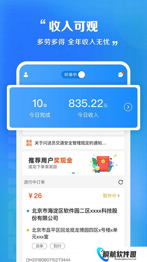 闪送员骑手app是一款专为配送端打造的接单平台,在该平台中注册成为闪送员的门槛非常的低,只需要满足注册的需求就可以在其中注册成为一名骑手,让你随时随地都可以从平台中进行接单配送。这里所有的订单都是透明展示的,并且闪送员每次只能接取一个订单,一对一的配送服务确保了配送的高质量,可以更快更安全的让顾客拿到闪送的商品。