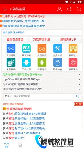 八神智能天下是一款拥有众多资深游戏玩家的游戏社区。每天都会为各位玩家带来丰富的免费游戏辅助资源和信息,让你能够在线获取更多资源,这些资源有助于你更好地完成游戏关卡,寻找稀有资源包,满足不同的游戏需求。内置交流社区,大家能够在其中自由的发帖求助,寻找各类辅助工具以及实用软件,给你带来更多帮助。