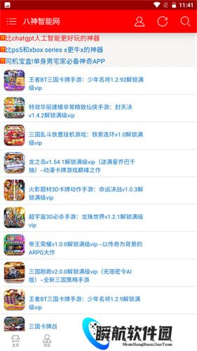 八神智能天下app是一款受到很多游戏玩家喜爱的游戏辅助软件,软件当中的内容分为多个不同的版块,点击相应的板块就能找到需要的内容。每个游戏都自带评论区,方便大家与其他玩家进行交流互动,分享各种心得。游戏平台每日都会分享大量免费游戏资源,满足各位玩家的游戏需求。软件每天会发布最新的游戏资讯、攻略,以及福利线索等内容,让大家更好的享受游戏带来的快乐。
