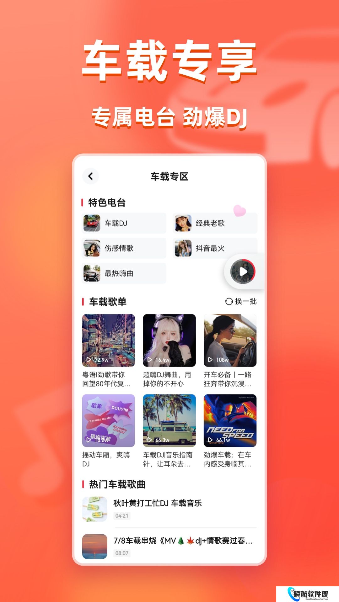 快音车载版app是一款专为用户打造的车载音乐播放器,在该播放器当中汇聚了海量的音乐资源,并且全网的音乐热歌都可以在这里进行免费播放,去享受喜欢音乐的免费播放体验。在播放器当中更是设置了不同类型的音乐类