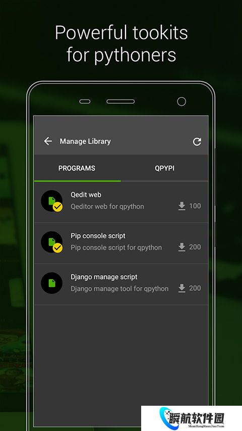 qpython3是一个适用于安卓手机的Python代码编辑器,集合控制台程序、SL4A程序、WebApp项目等多种功能于一体,还能通过QR码将电脑端未完成的代码转移到手机上,帮助开发者们随时都能调试代码。