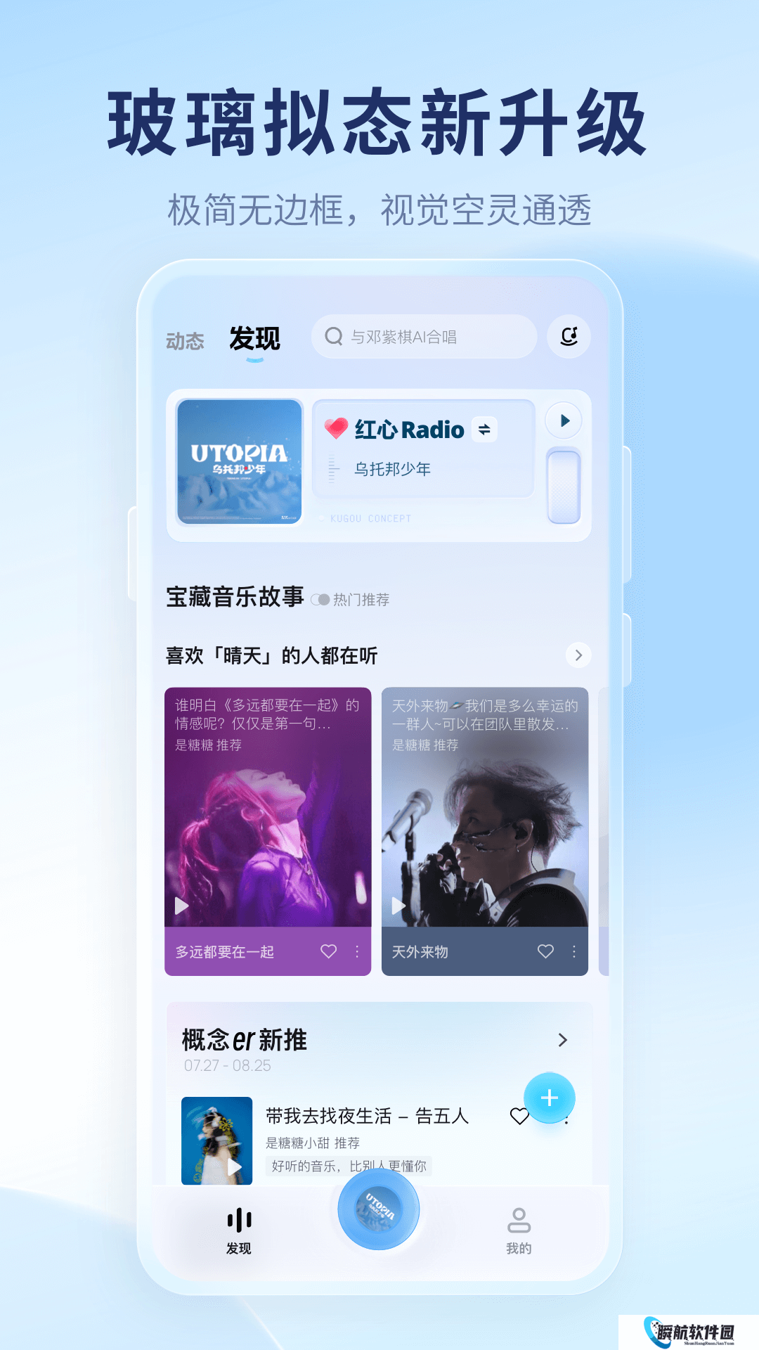 酷狗音乐概念版永久vip是酷狗专为年轻人们打造的一个纯净音乐播放器,与原版酷狗相比,概念版要更注重整体的使用体验,在功能上删除了所有的弹窗、营销系统,一切只为让搜歌、听歌体验更纯净,专注于音乐发现中。