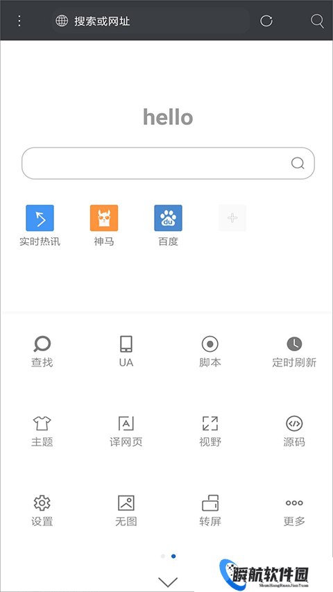 安装好后「米侠浏览器」的默认启动页很清爽干净,不像某些浏览器会推送一些新闻等乱七八糟的功能,如果你对自带的网址不喜欢,可以长按来删除、编辑、或者自己添加一些常访问的网址。