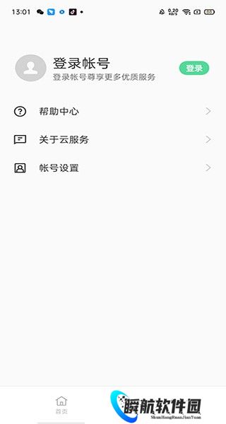 1、打开软件,直接进入首页,可以选择不同的服务以及直接了解你的云空间大小。