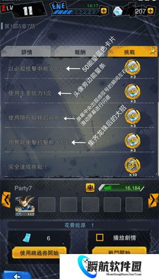 4、特殊动作。这些动作是角色特有的,就像是魔法增益卡。这些卡牌比攻击动作更有效,在内测中,他们都会受到气功的伤害。某些角色也有通过使用他们的“主要能力”获得的第二个特殊动作。而且这四种技能都可以附加一个龙珠,如果你收集了其中的七个,龙珠图示就会变化,RISING RUSH按钮也会随之出现!点选RISING RUSH按钮。