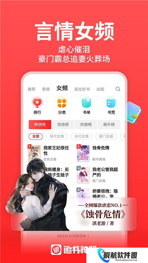 追书神器安装包app是一款专为读者打造的免费追书神器,在该阅读器中呈现的小说资源极为的全面,在首页当中分为了推荐、男频、女频、阅文好书等多个分类,每个分类当中都打造了畅销榜、完结榜、热搜榜、飙升榜等多