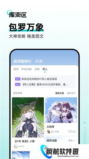 2、首先,作为一个游戏社区,库街区为用户提供最新的游戏资讯和动态,方便用户快速获取游戏关键信息,如提供【推荐】、【讨论区】、【攻略】、【同人】等不同的内容版块。