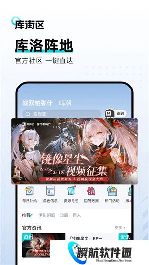 库街区安装包是库洛官方针对旗下游戏设计的社区软件。软件带来了丰富的库洛游戏资讯,涵盖更新公告、攻略视频、福利活动等,是战双等库洛旗下游戏玩家的必备辅助软件。这里有着活跃的玩家社区板块,海量玩家将在这里分享自己的游戏心得、同人漫画等资源。社区有着战双官方账号入驻,为玩家第一时间带来游戏更新动态,还能让玩家及时反馈自己在游戏中遇到bug,从而提升自己的游戏体验。