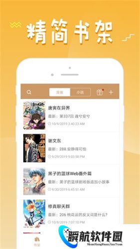 1、打开软件进入主界面,首页是书架,在这能够保存想看的漫画和小说。