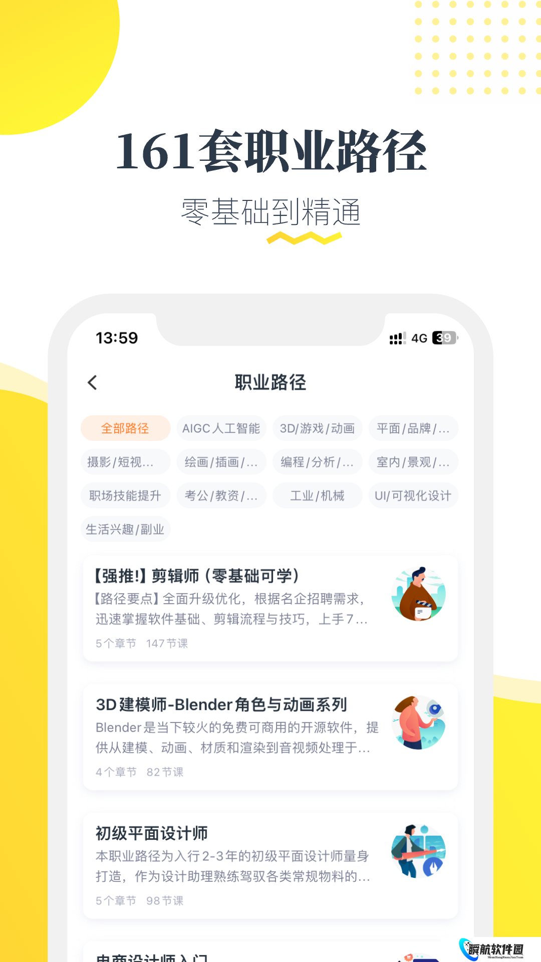 1、涵盖插画、编程、运营等近80种职业课程,助力零基础小白掌握职业技能。