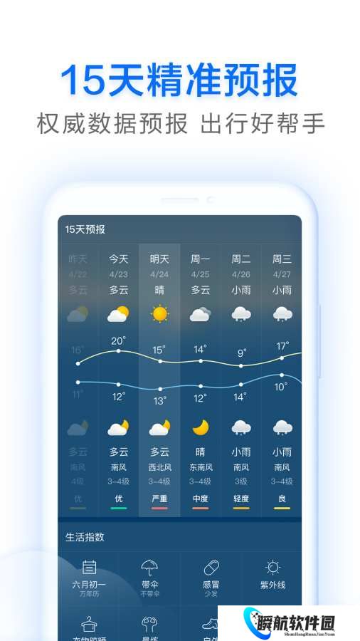 2、每日都会提供您日常所需的穿衣、钓鱼、紫外线、感冒、运动、洗车等生活指数。