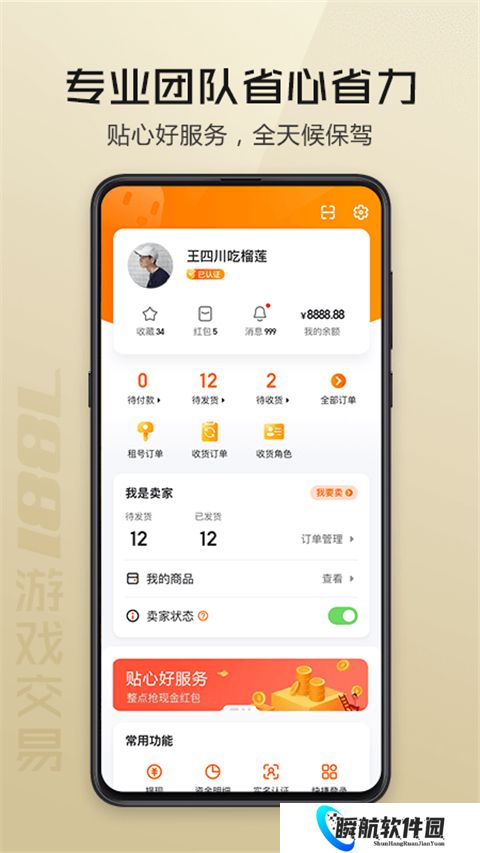 3、个人中心常用功能随时快捷维护,账号订单查询,资金明细一目了然。
