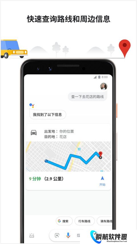 3、通过语音查找附近的餐厅、咖啡馆,获取详细的地址和路线信息。