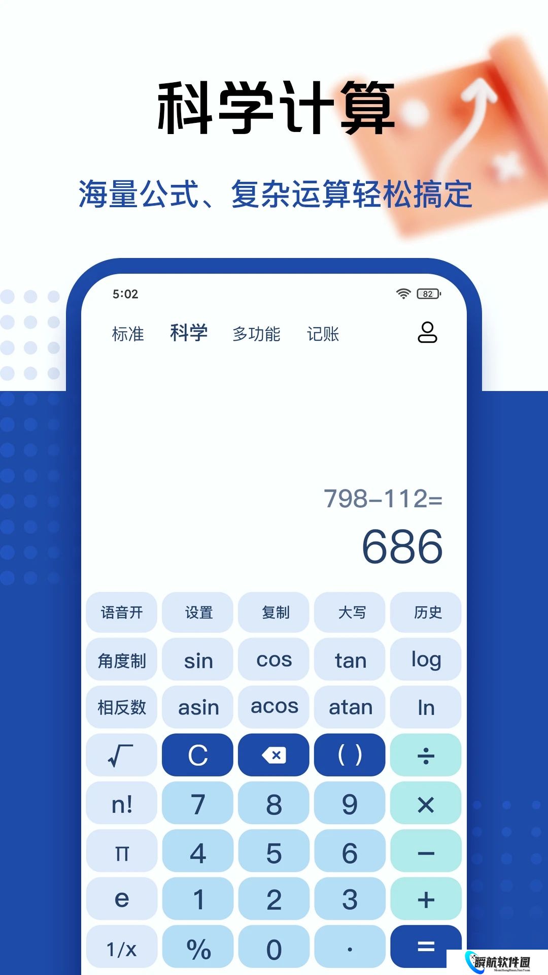2、内置科学计算器,支持复杂的数**算、三角函数、对数函数计算。