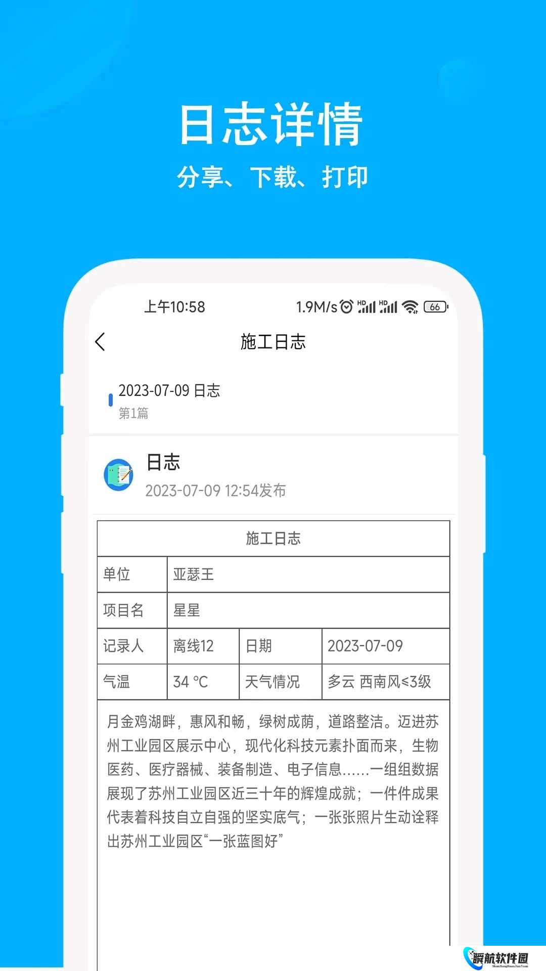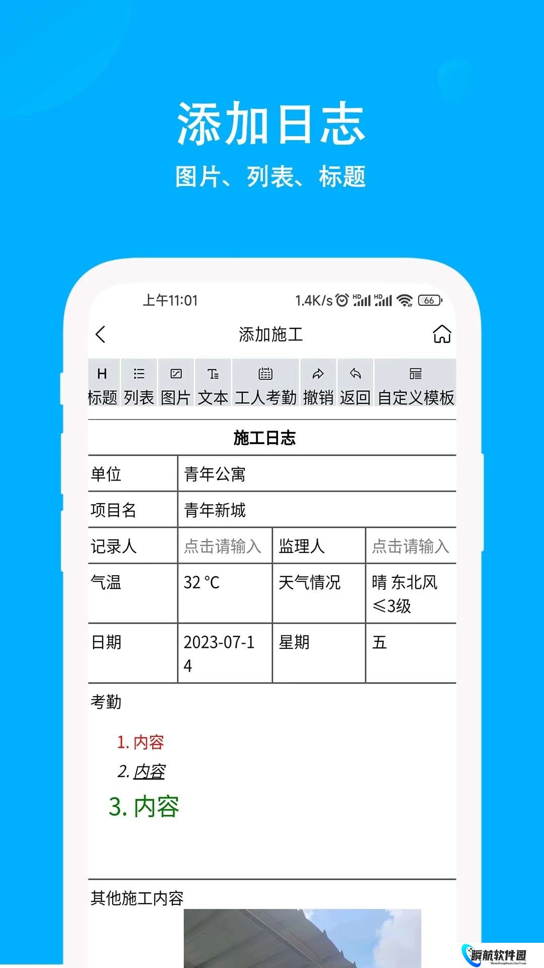 2、可以对自己的施工进行详细的记录,清楚地掌握自己的工作进度。
