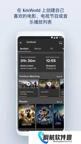 3、连接KrisWorld机上娱乐系统,直接从手机/平板电脑上播放喜欢的影片。